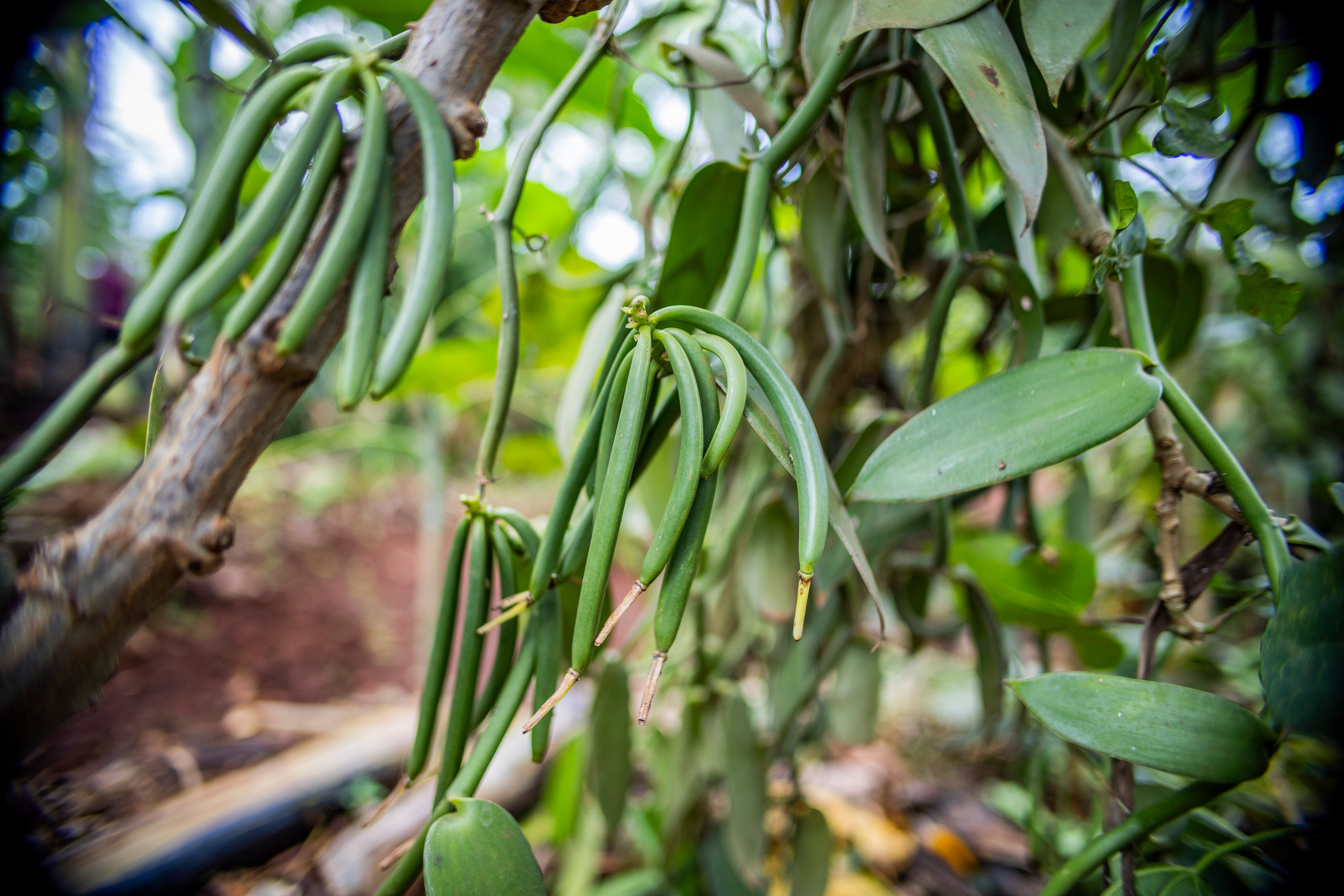 Unsere Permaculture Vanilla Splits sind natürlich gespaltene Vanilleschoten, die auf der Farm oder während des Reife- und Trocknungsprozesses entstehen.